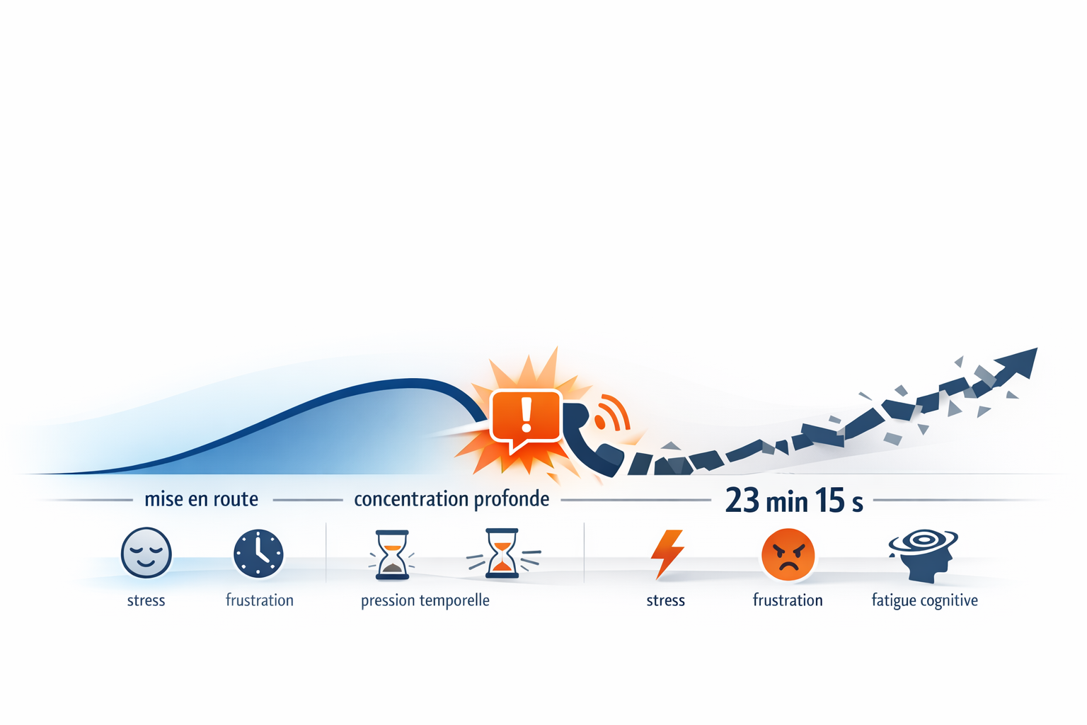 Le paradoxe est là : vos clients attendent de vous de la disponibilité, mais ce qu'ils achètent vraiment, ce sont des livrables solides, une pensée claire, une analyse juste, une recommandation utile, une exécution fiable. Or ce niveau de qualité exige des plages longues, stables et protégées. Cal Newport définit le deep work comme le fait de se concentrer sans distraction sur une tâche cognitivement exigeante, et le relie à la production d'un travail à forte valeur. En parallèle, la littérature sur le flow montre que la concentration profonde s'installe plus facilement quand les objectifs sont clairs, le feedback lisible et le niveau de défi bien ajusté ; les travaux de Gloria Mark rappellent, eux, que les interruptions ont un vrai coût cognitif et émotionnel.